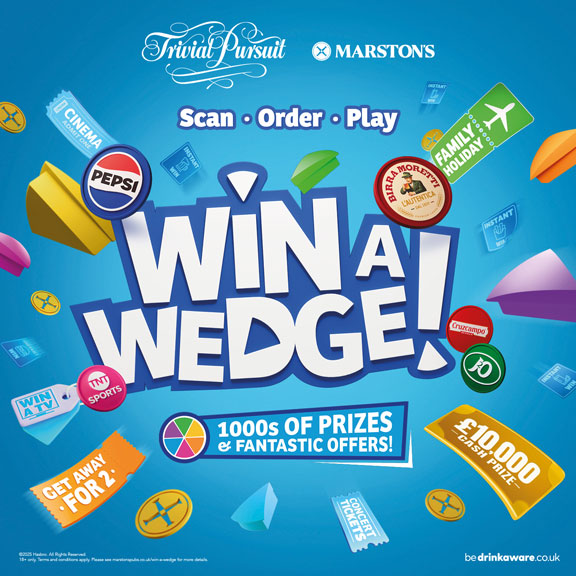 Today, Marston’s has launched ‘Win A Wedge’, a national promotion with Hasbro’s iconic TRIVIAL PURSUIT brand, giving local guests the chance to win thousands of exciting prizes by answering general knowledge trivia questions correctly when they visit one of over 1,000 pubs.