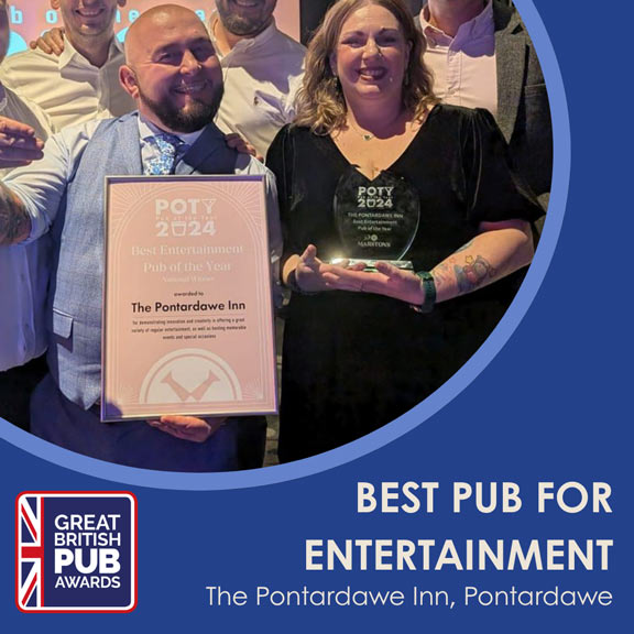 Among the standout pubs up for Great British Pub Awards are The Pontardawe Inn, Pontardawe, a finalist for the Best Pub for Entertainment category, and The Old Duke, Southport, which is up for the Best Pub for Dogs award.